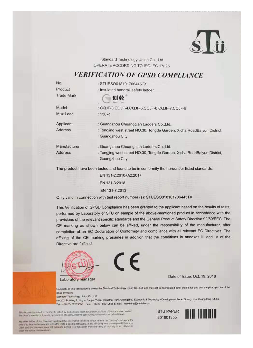 - 創(chuàng)乾折疊梯檢測報告